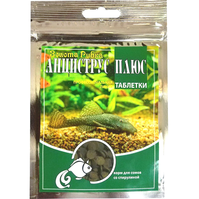 Crystal aqua\\Корм для сомов Анцитрус Плюс со спирулиной, пакет 100 мл/ 40 гр