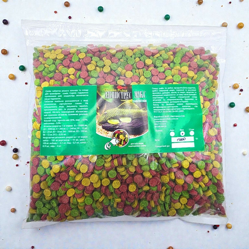 Crystal aqua / Товари та послуги / Корм для сомов Анцитрус Микс пакет 1 кг