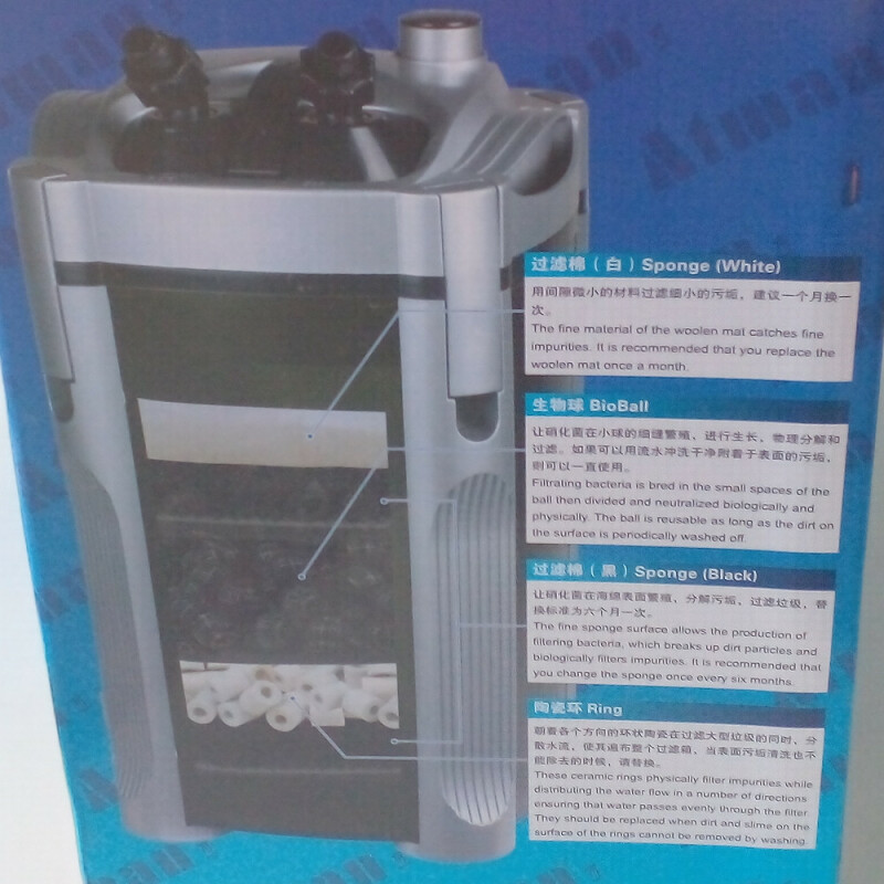 В наборе идут необходимые переходники, трубки для подключения, поролон для механического очищения, био- и керамический наполнитель